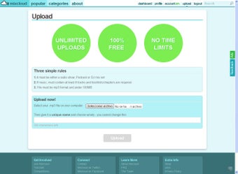 En Mixcloud, dispones de subidas ilimitadas, gratis y de escucha sin anuncios ni límites de tiempo. La única condición es que subas sesiones de al menos ocho canciones, show de radio o podcasts correctamente etiquetados y por debajo de 100MB.